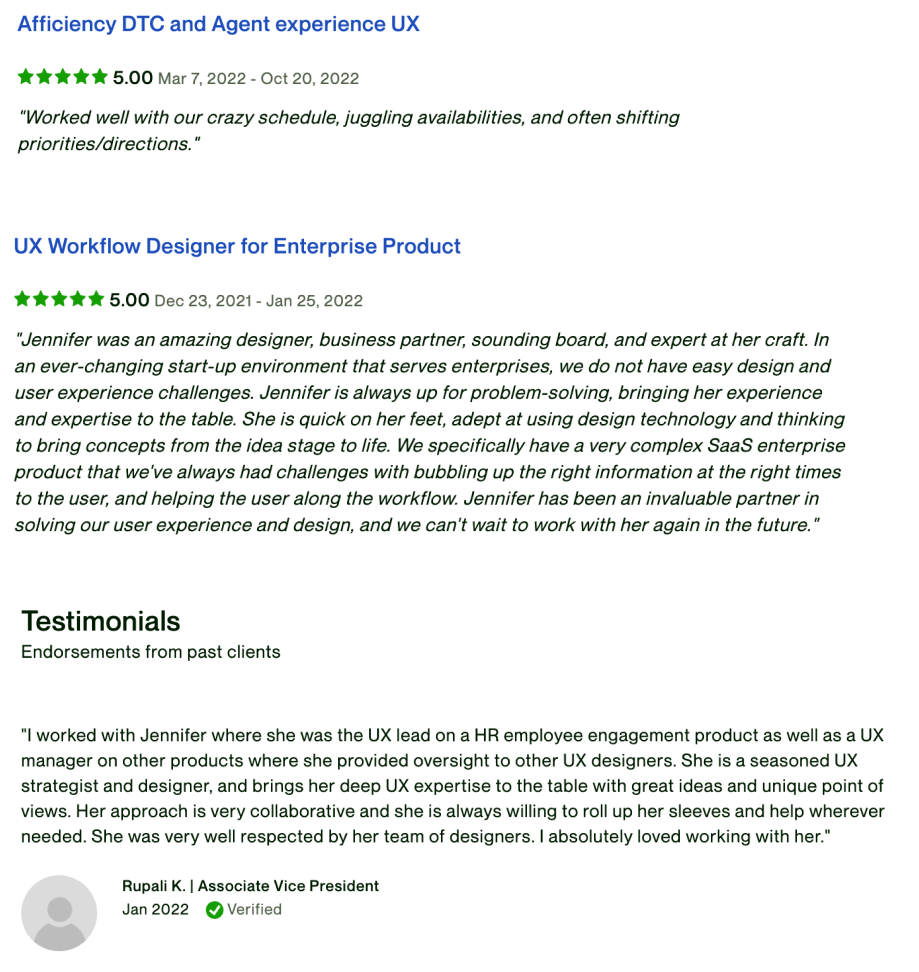 I've helped companies of all sizes and industries achieve business results by improving the user experience of their product or service. I've worked with clients clients in the Fintech, Healthcare, Real Estate, and Technology space.